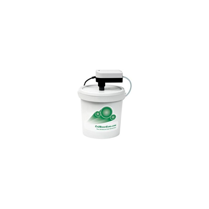 El CO2Boost es un sistema de producción de CO2 realmente revolucionario y novedoso que se compone de un cubo que contiene una fórmula patentada, una bomba y un tubo para conducir el CO2 a la zona de cultivo.