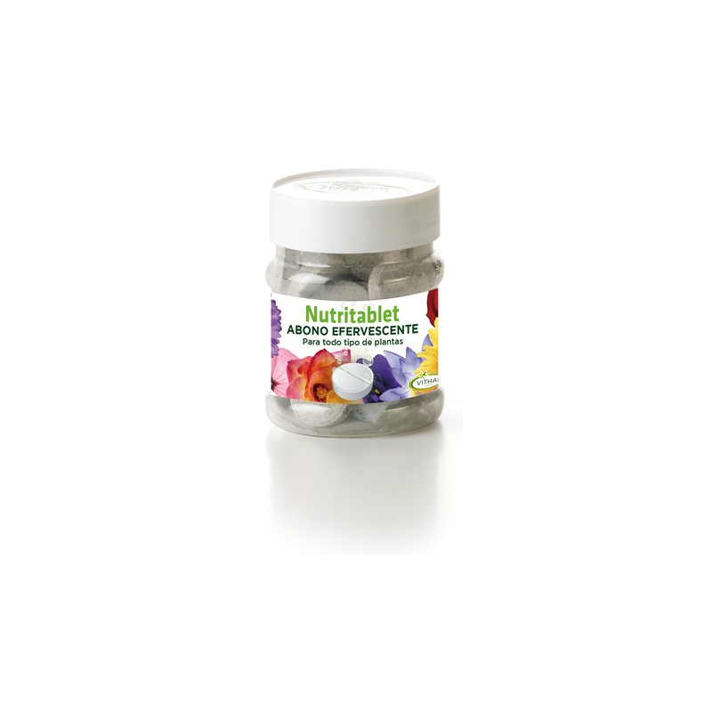 Nutritablet en f orma de comprimidos efervescentes, permi te aportar los nut rientes necesarios , y en la cantidad a decuada, de forma có moda, sencilla y ráp ida, para el desarro llo de todo tipo de plantas.Su conte nido en elementos pr incipales (nitrógeno , fósforo y potasio) y su aporte de micr oelementos (hierro, zinc, manganeso...) potencian su metabol ismo, estimulan los procesos de la fotosíntesis y me joran la composición nutritiva del subst rato o suelo.
