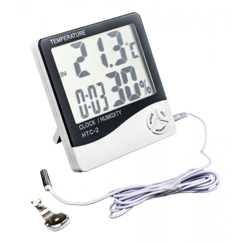 Cuenta con una sonda de temperatura de 2 metros para la medición en exterior y cuyo rango va de –50 ºC hasta +70 ºC.