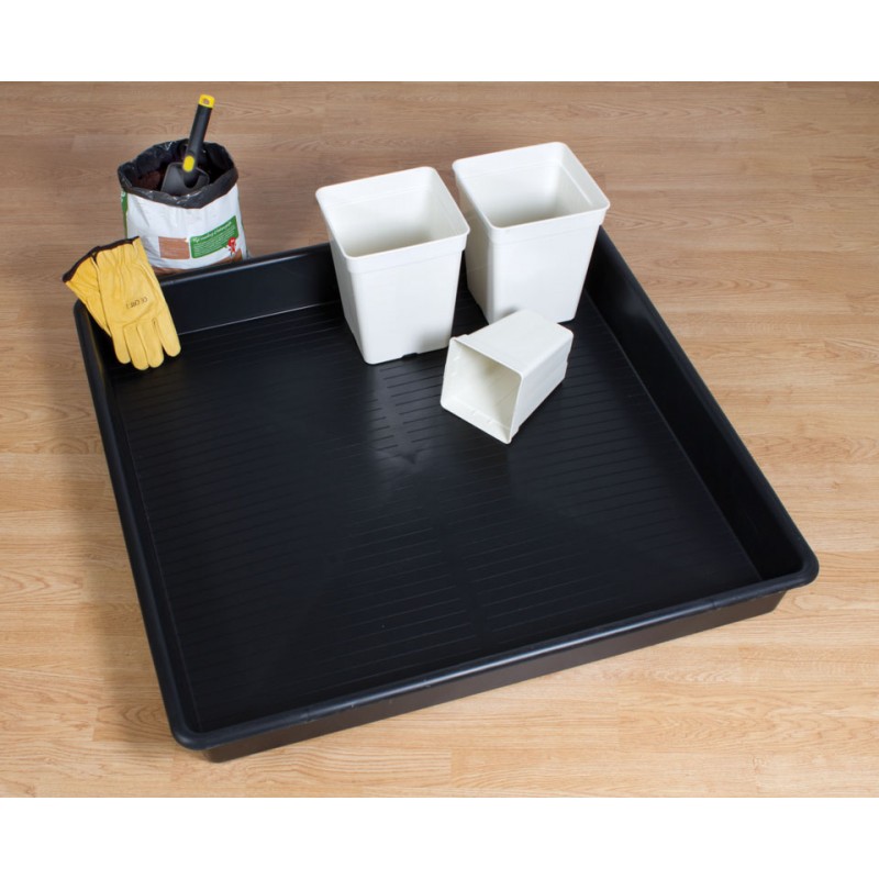 Bandejas cuadradas de gran tamaño, y con bordes altos de 12cm, muy versátiles, que permiten recoger el drenaje de las plantas.